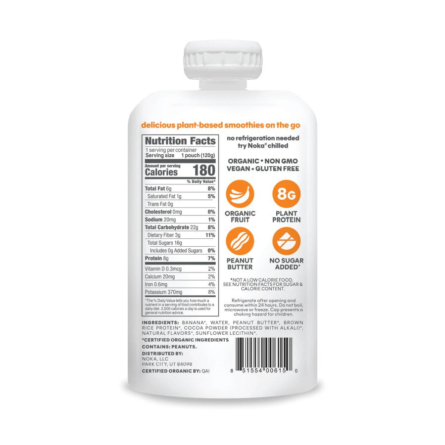 Enjoying refreshing smoothies packed with nutrient dense, organic ingredients just got even simpler! NOKA Superfood Smoothies are not only super in taste and nutrition—they're super for powerful snacking on the go. The convenient BPA free squeeze pouches keep banana / cocoa + peanut butter plant protein smoothie ingredients fresh, with no artificial preservatives and no refrigeration required.